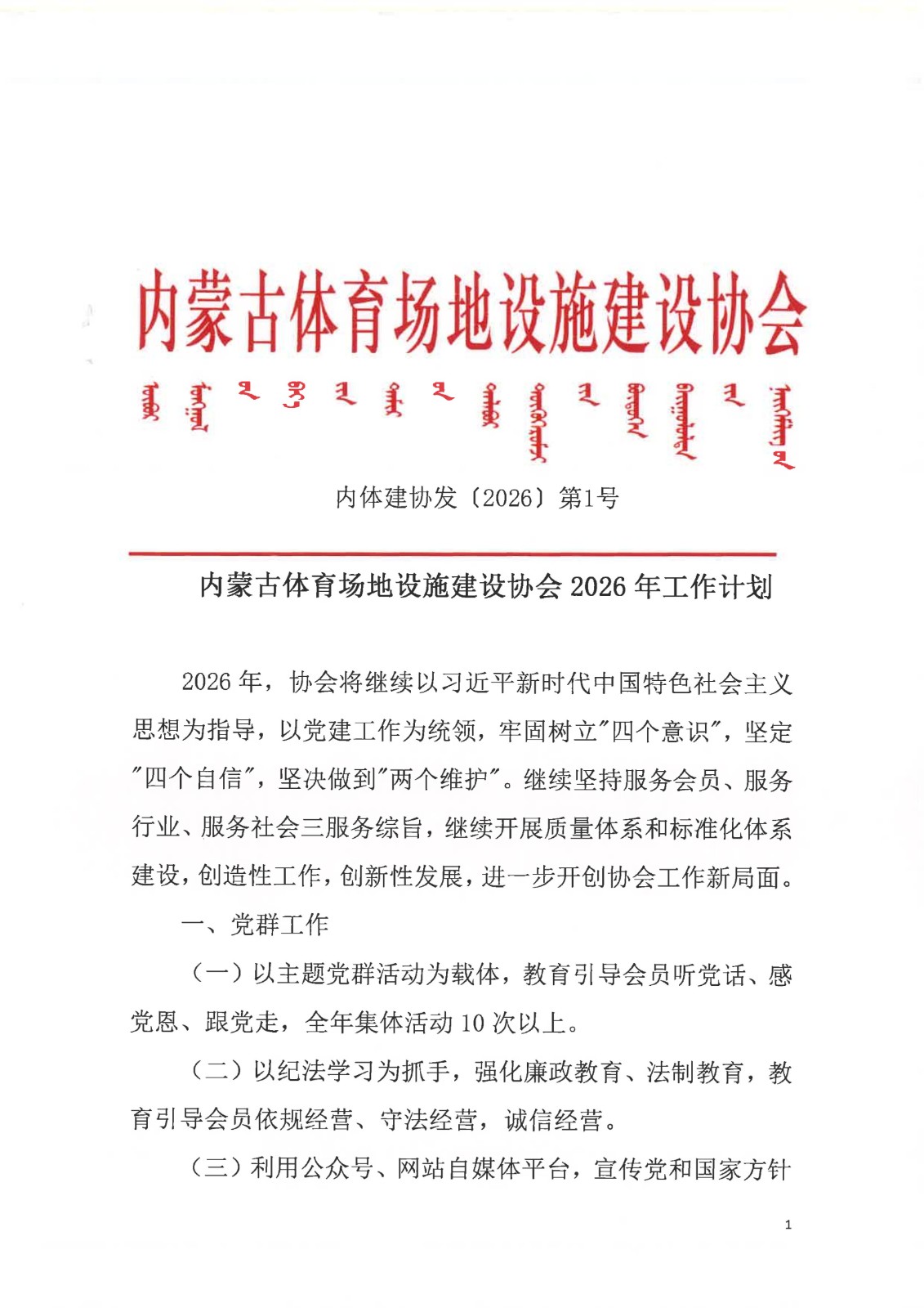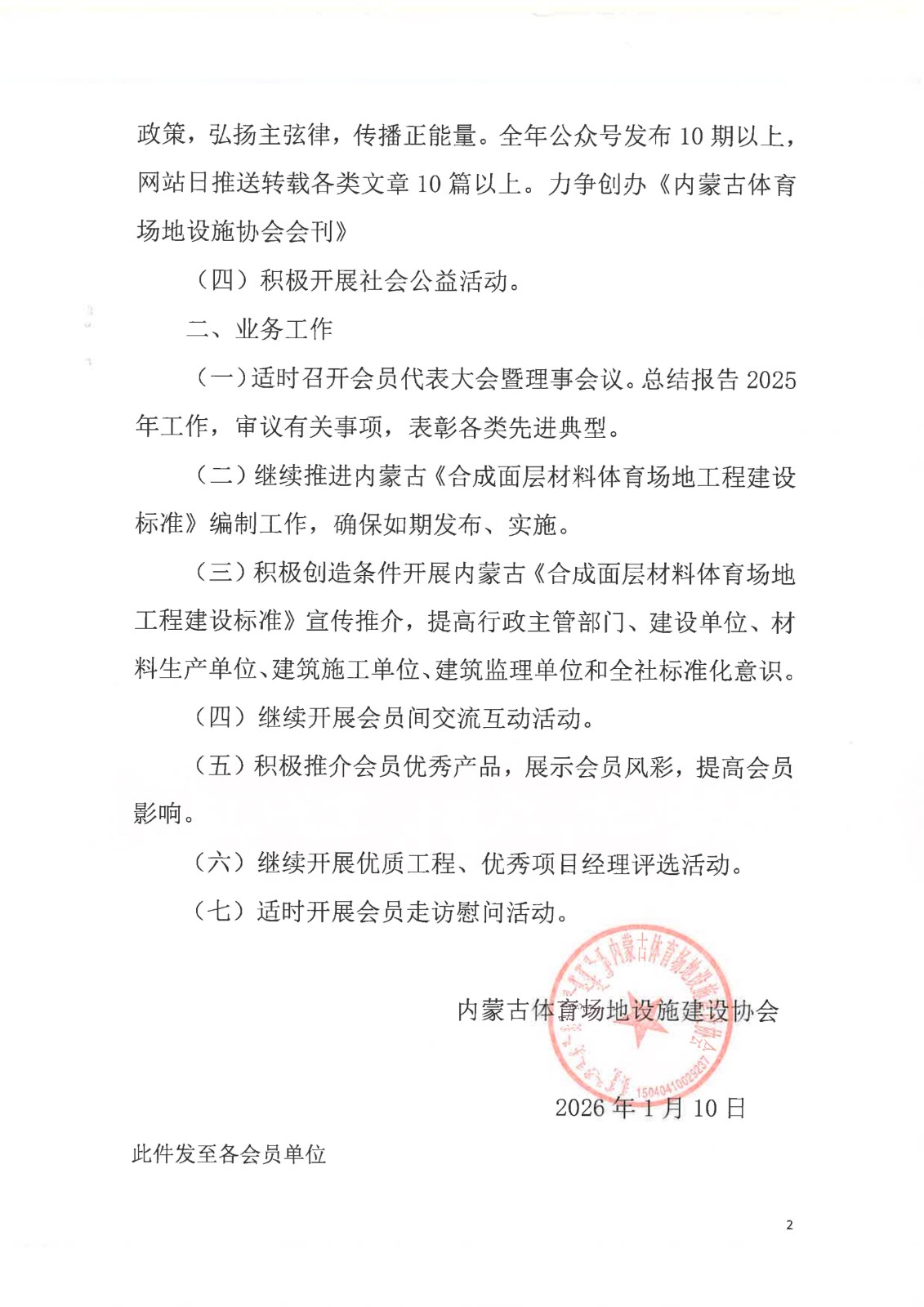 内蒙古体育场地设施建设协会2026年工作计划